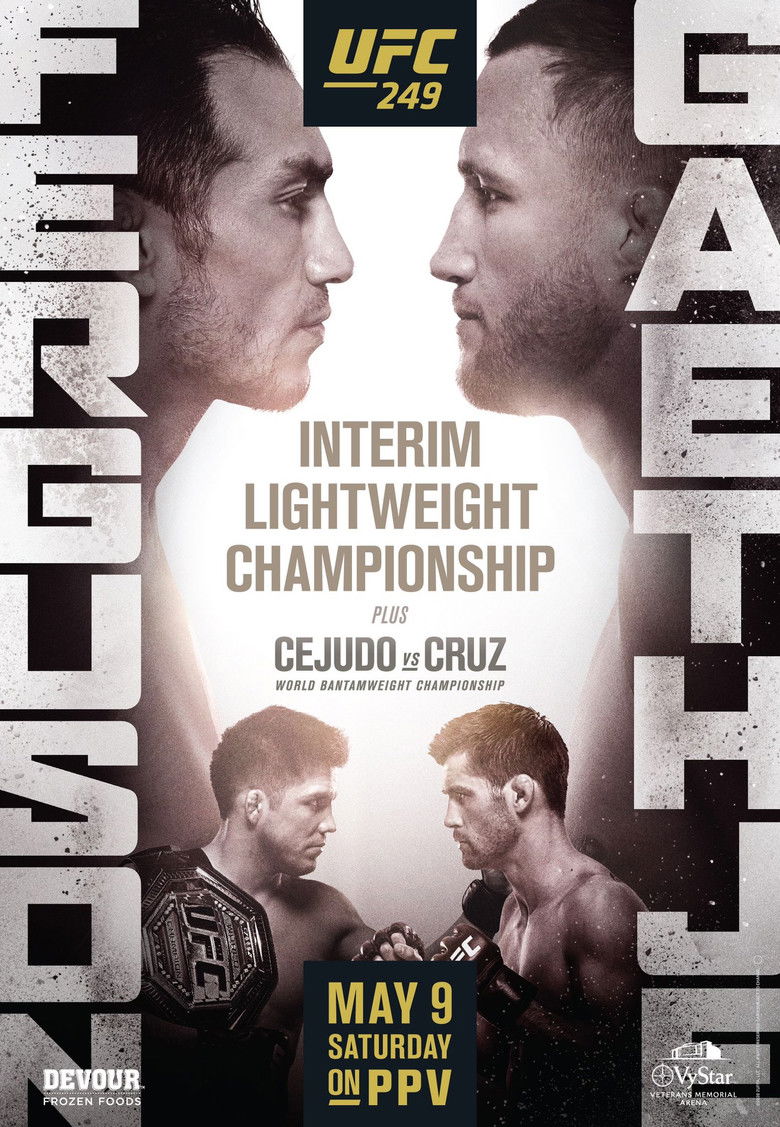 UFC 249: Ferguson vs. Gaethje was a mixed martial arts event produced by the Ultimate Fighting Championship that took place on May 9, 2020 at VyStar Veterans Memorial Arena in Jacksonville, Florida, United States.